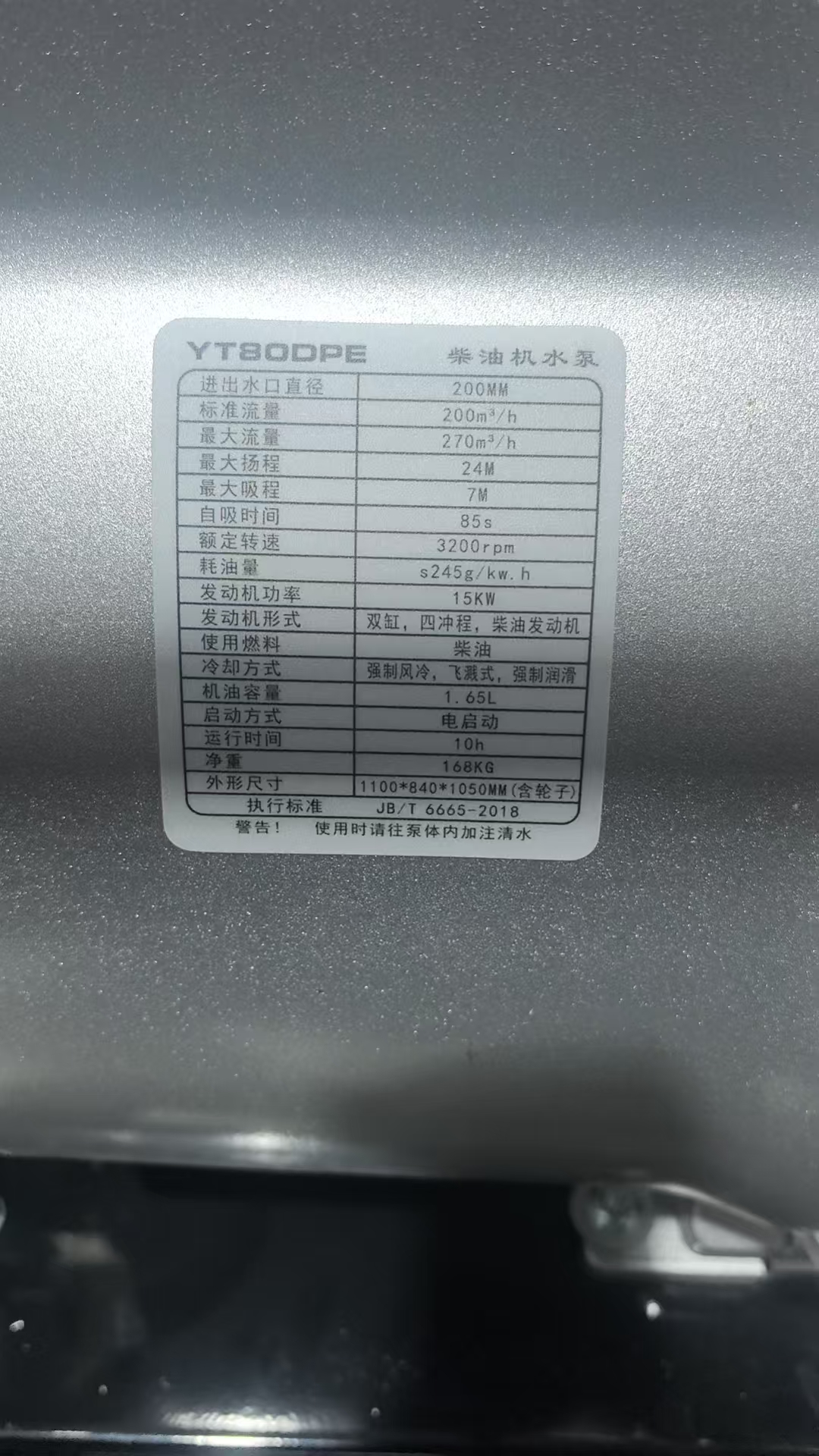 移动式大流量柴油抽水泵8寸YT80DPE电启动